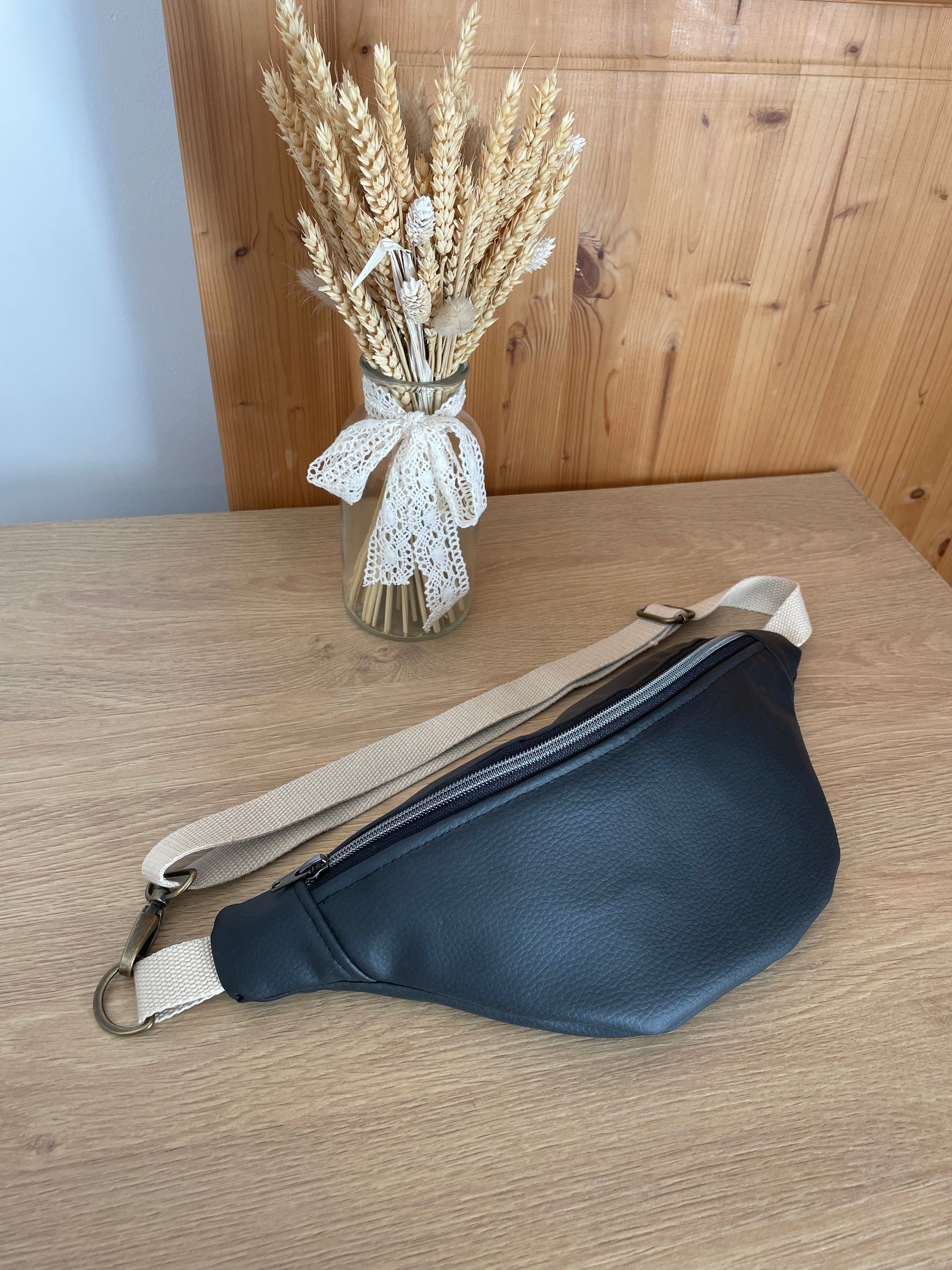 Cette banane pour homme réalisée en similicuir noir saura vous accompagner élégamment tout en vous permettant d'emporter votre nécessaire : clés, téléphone, portefeuille.