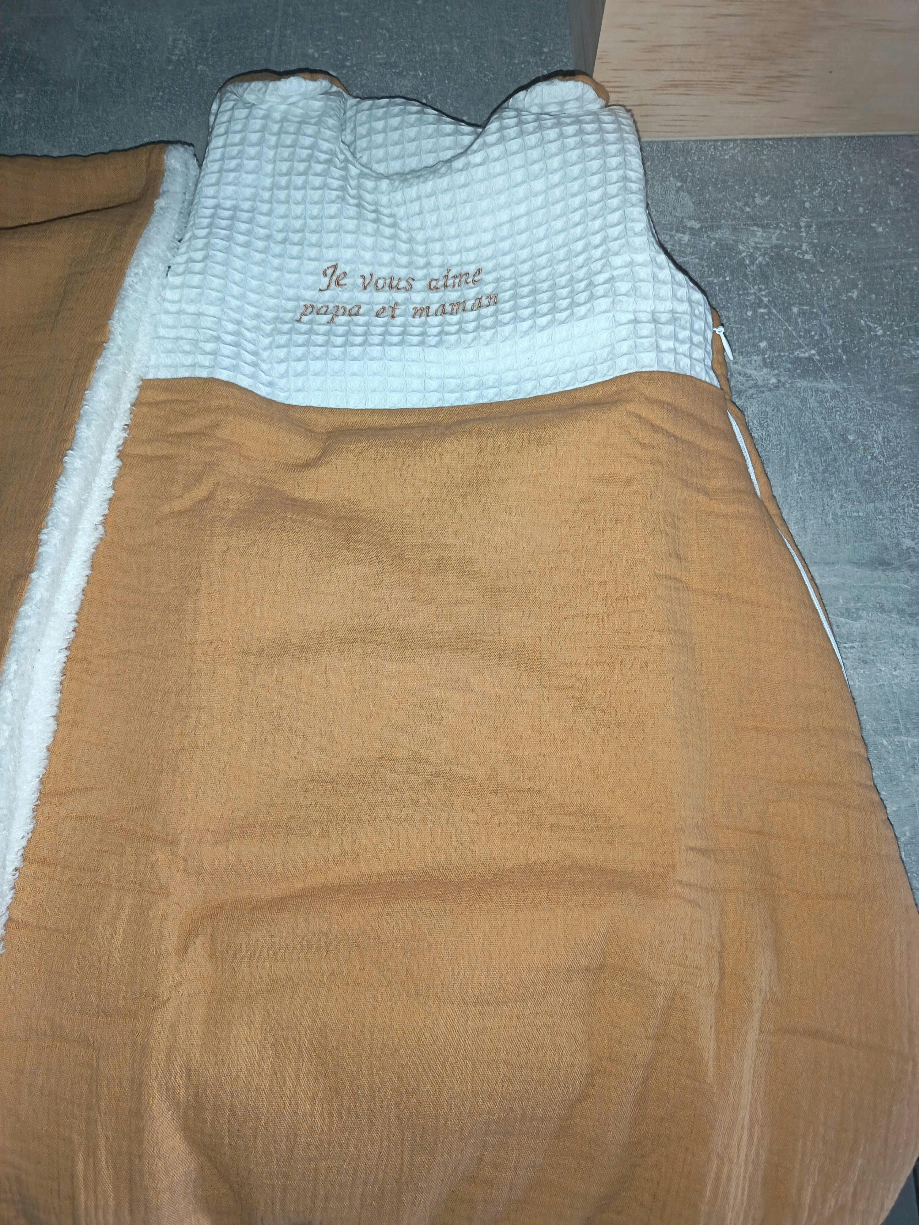 Lors de la commande, indiquez le prénom (et la date si souhaitée). Vous pouvez aussi préciser la couleur du fil ou un motif. Je vous contacte si besoin pour confirmer la maquette avant broderie.