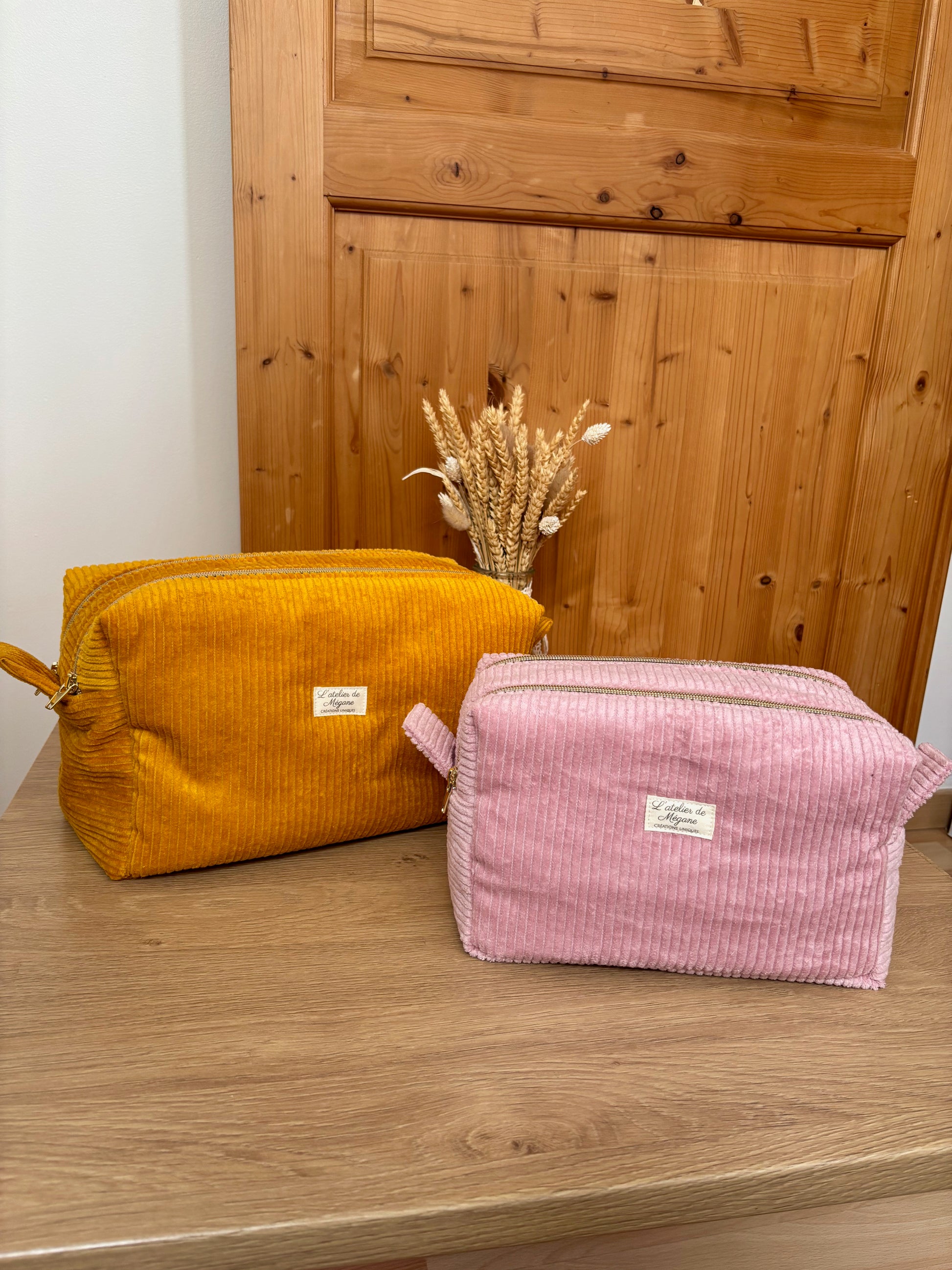 Alliez élégance et praticité avec cette trousse de toilette vanity double compartiments en velours, imaginée et cousue à la main dans mon atelier.