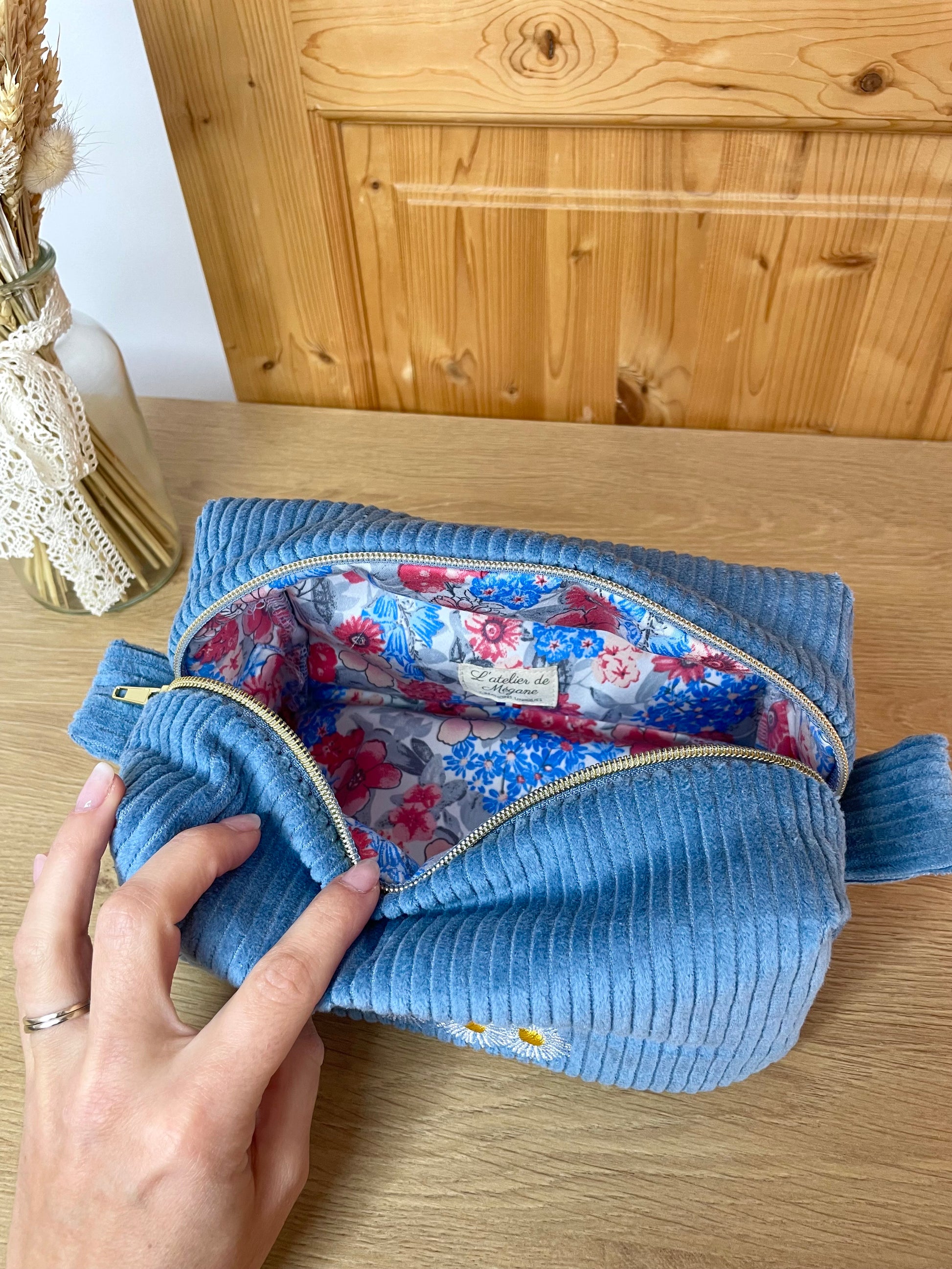 Cette trousse réalisée en velours côtelé sera parfaite pour ranger vos accessoires beauté, coiffure ou d'hygiène.